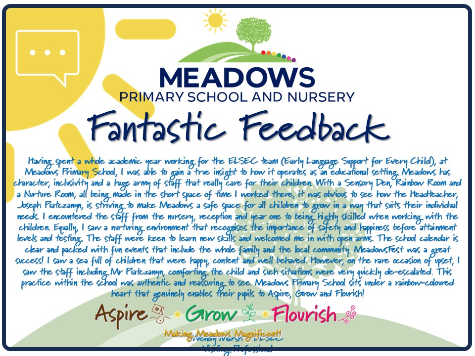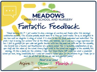 We are always grateful to parents, carers and visitors to our school sharing their feedback with us! Here are some recent examples.