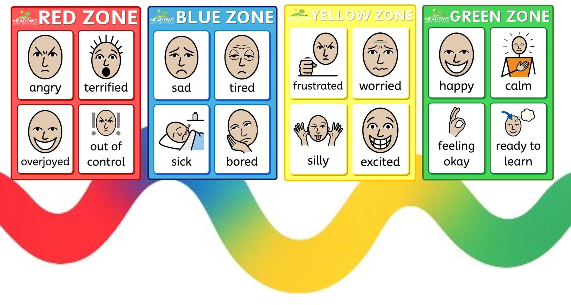 At Meadows Primary School and Nursery, we use the Zones of Regulation and Regulation Stations to help children check in with their feelings at the start of the day and throughout the day when needed.