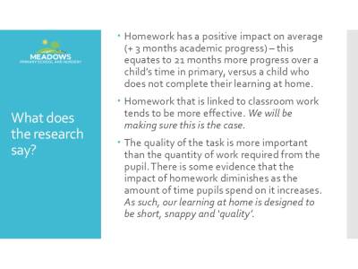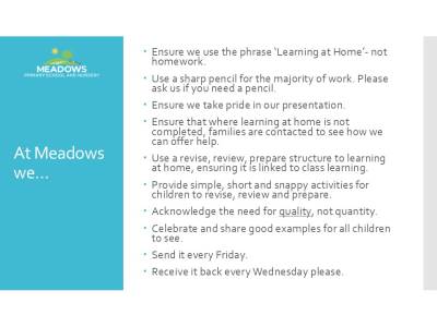 Our Learning at Home expectations are explained to parents as part of a child’s induction to school.