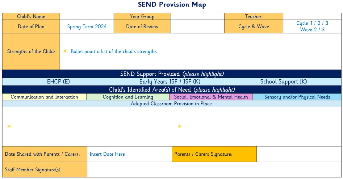 Stay Informed: Understand the goals, interventions, and strategies in your child's provision map. Regularly review updates or progress reports.