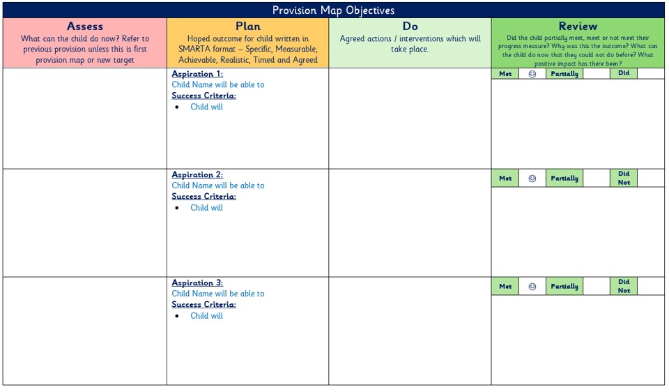 By detailing learning goals, strategies, and resources, provision maps help teachers and staff provide appropriate assistance, ultimately enabling children to aspire, grow, and flourish academically and personally. These maps foster a supportive learning environment, promoting inclusivity and equal opportunities for all children.